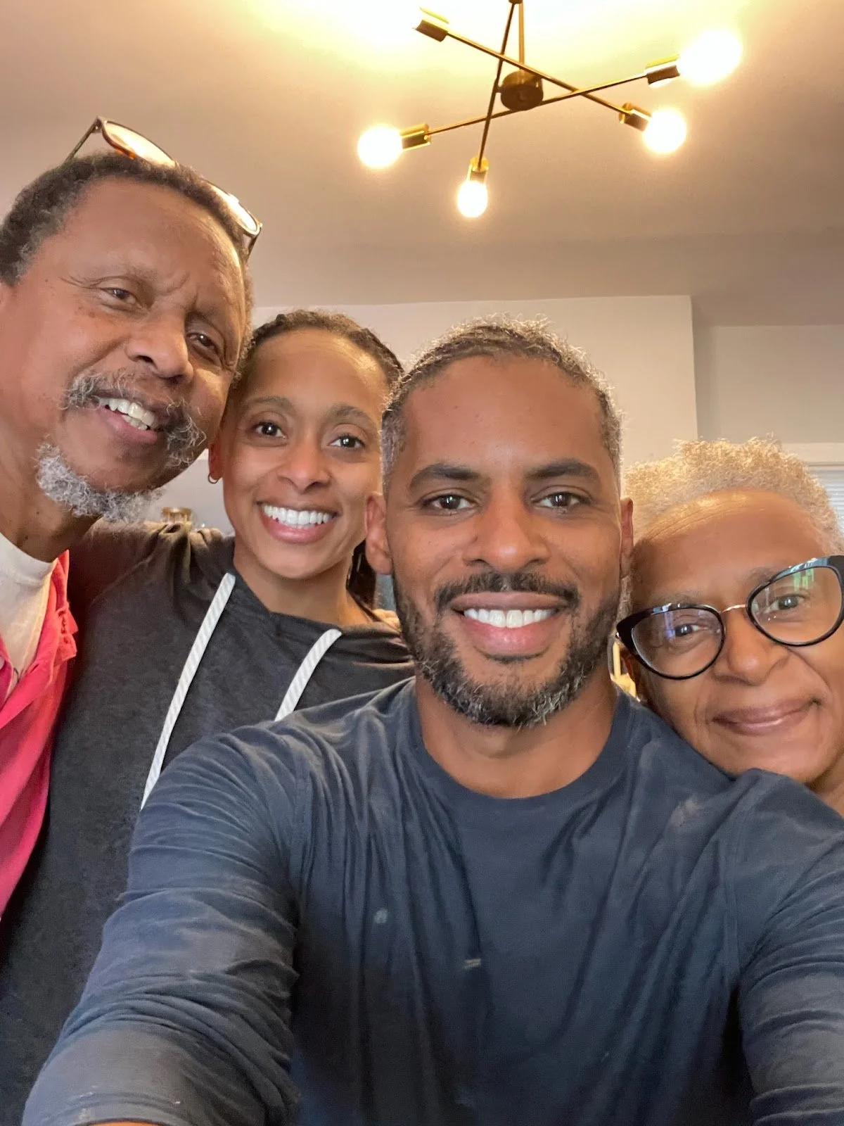 Rae Wynn-Grant with her parents, Bradford Grant and Toni Wynn, and David Seligman, her partner and father of her second daughter. Photo: Wynn-Grant collection