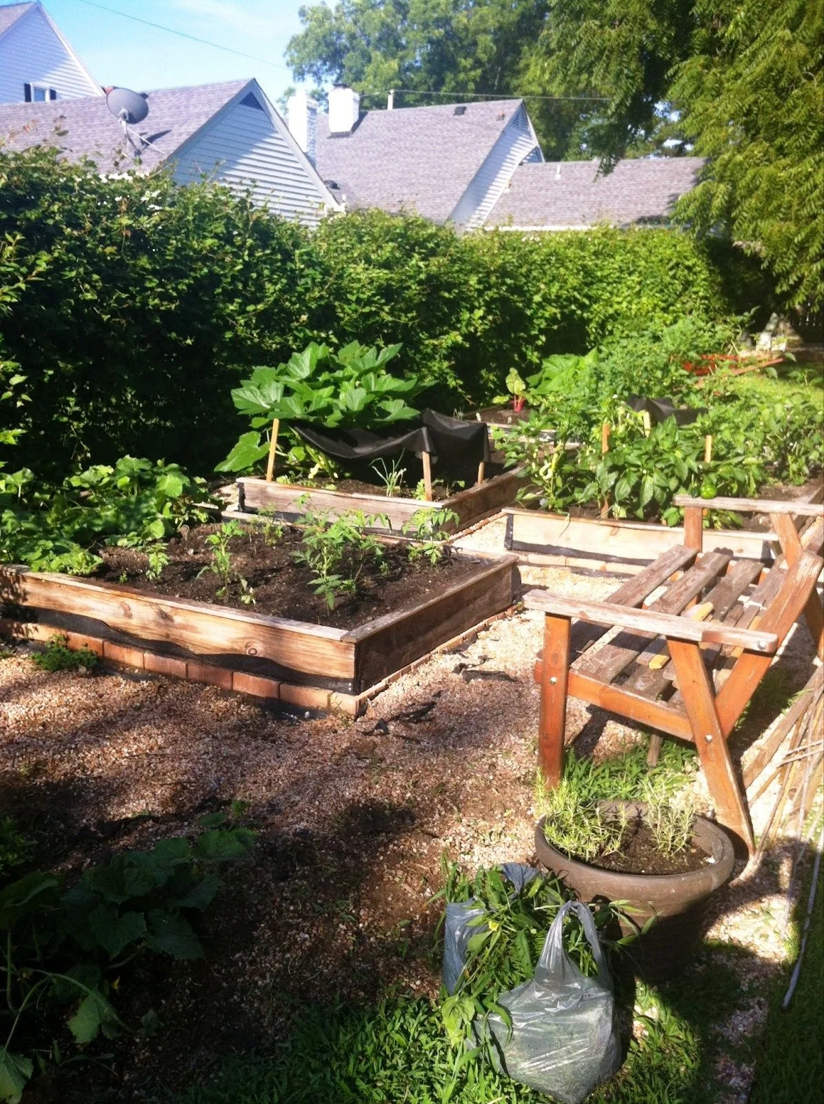 Not to mention the magic! Oh, go on and mention it. Toni, who lived alone when she had the raised bed garden, was astonished to find the little wooden bird that she kept in the second floor bathroom among the plants in one of the backyard beds. Somehow it got there on its own!