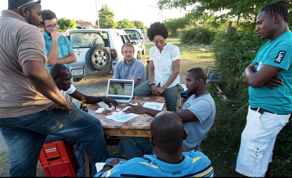 Ayana Elizabeth Johnson during community consultations for ocean zoning in Barbuda with the Blue Halo initiative. Photo: Will McClintock