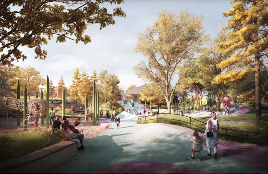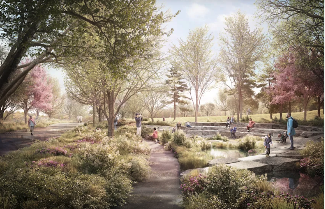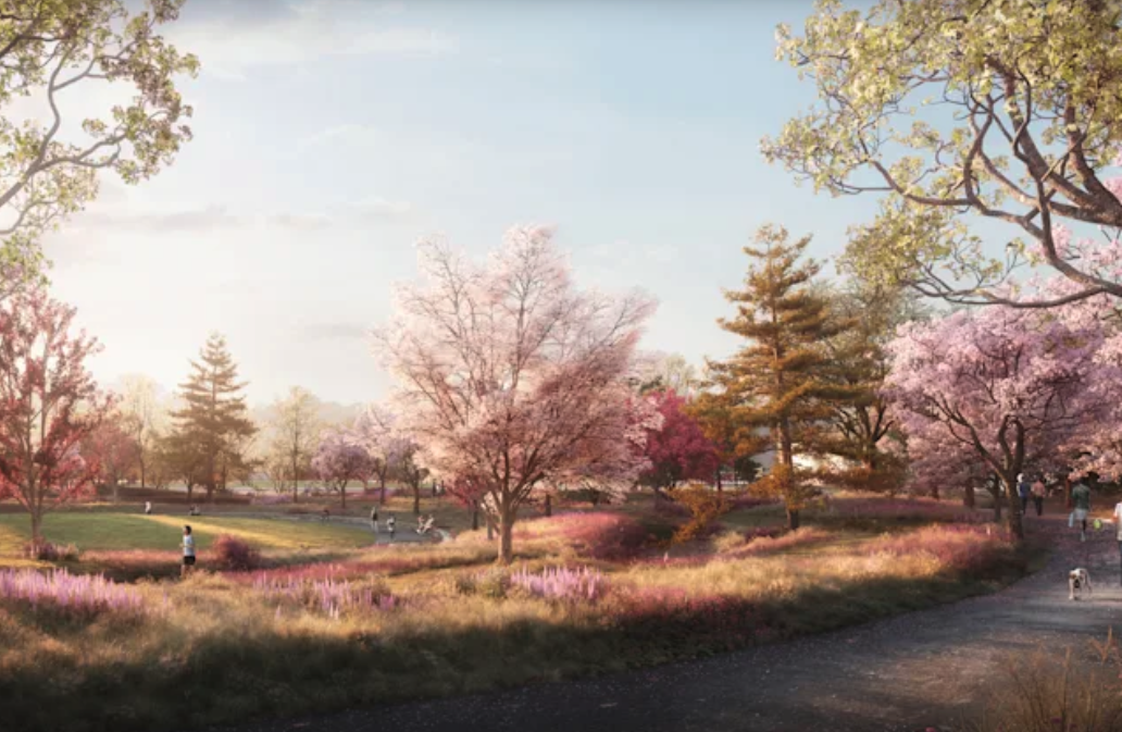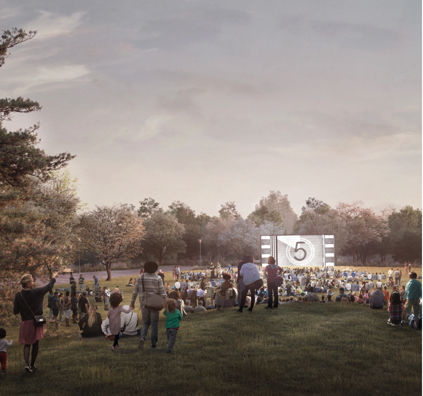 The Great Lawn. A sprawling 58,000-square-foot open space designed for joyful community exchange, perfect for summer picnics, reading, and even winter sledding.