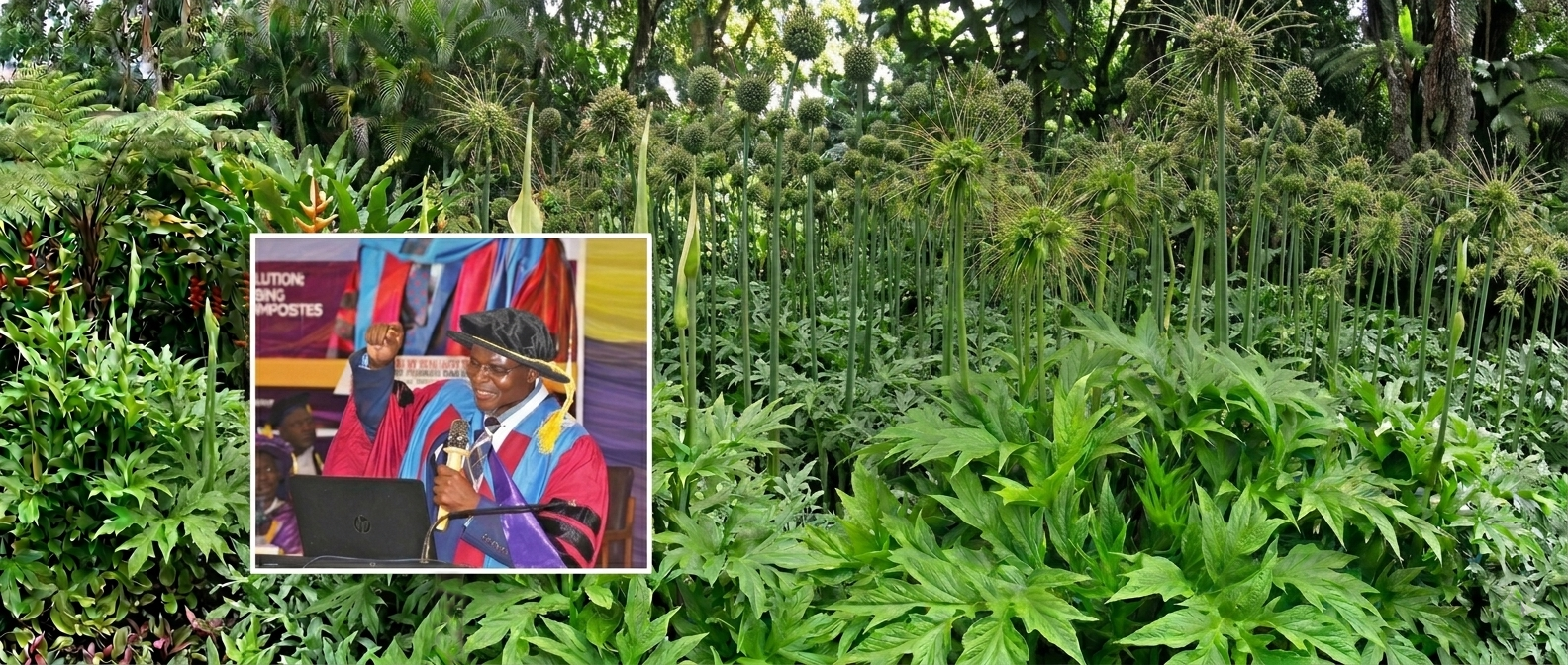 Prof. Ochigbo uses the tuber root of this tacca plant in his research.