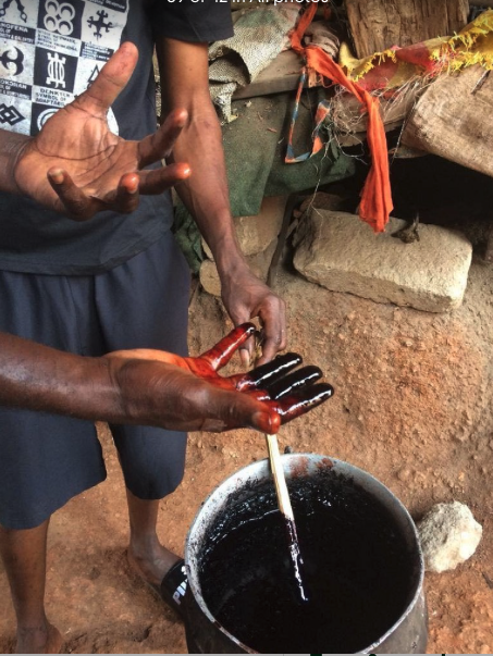 Far left: To make Adrinka ink, the bark is pounded to powder, mixed with water, boiled for several hours, strained and boiled again until it becomes a sticky black, permanent dye. Source:Trip Advisor