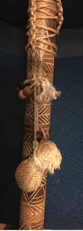 Detail of carved walking stick with poultice, both made by the author.
