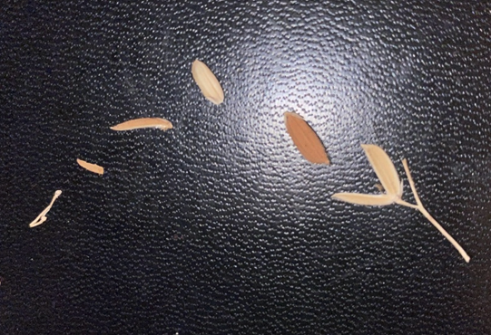 One kernel of raw rice after threshing and winnowing before polishing
